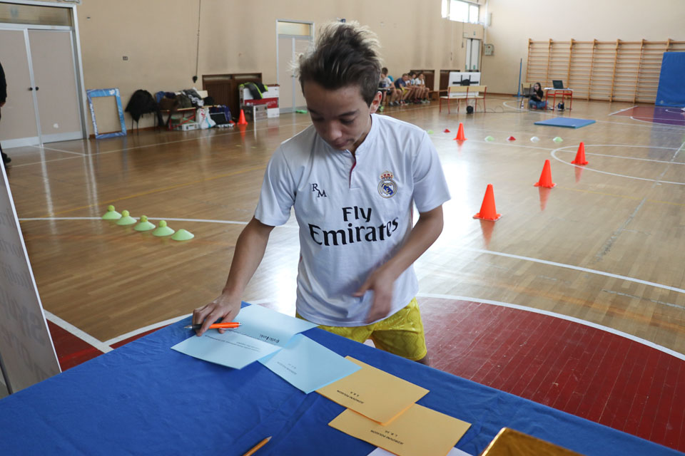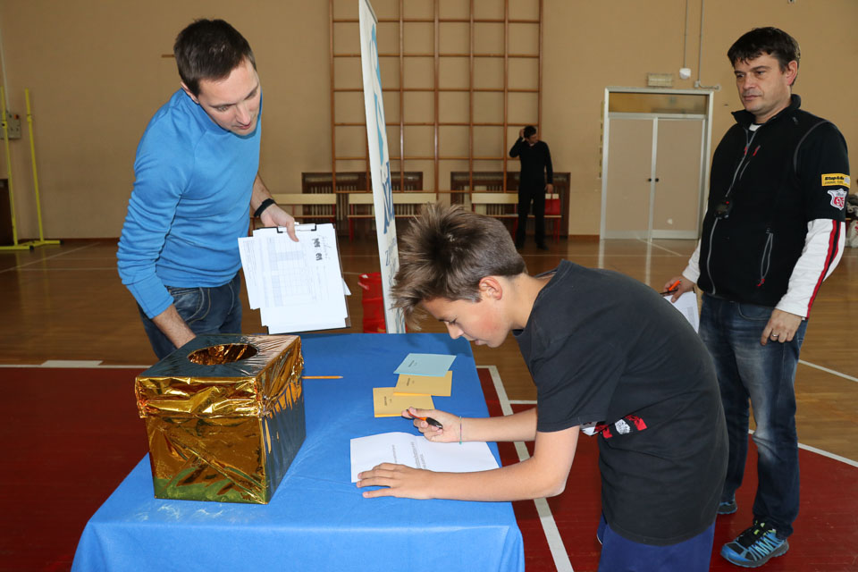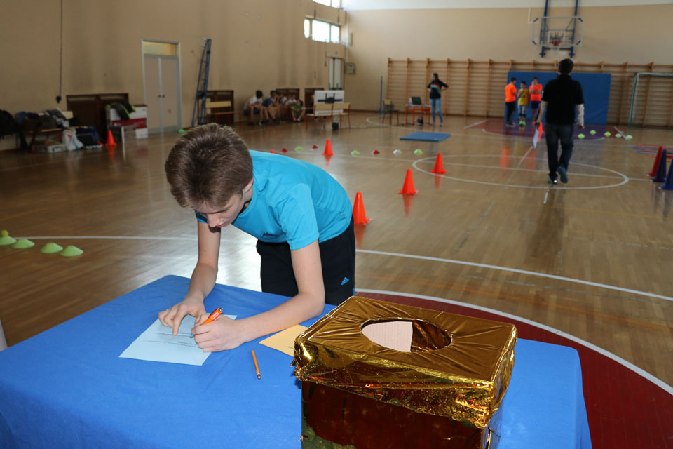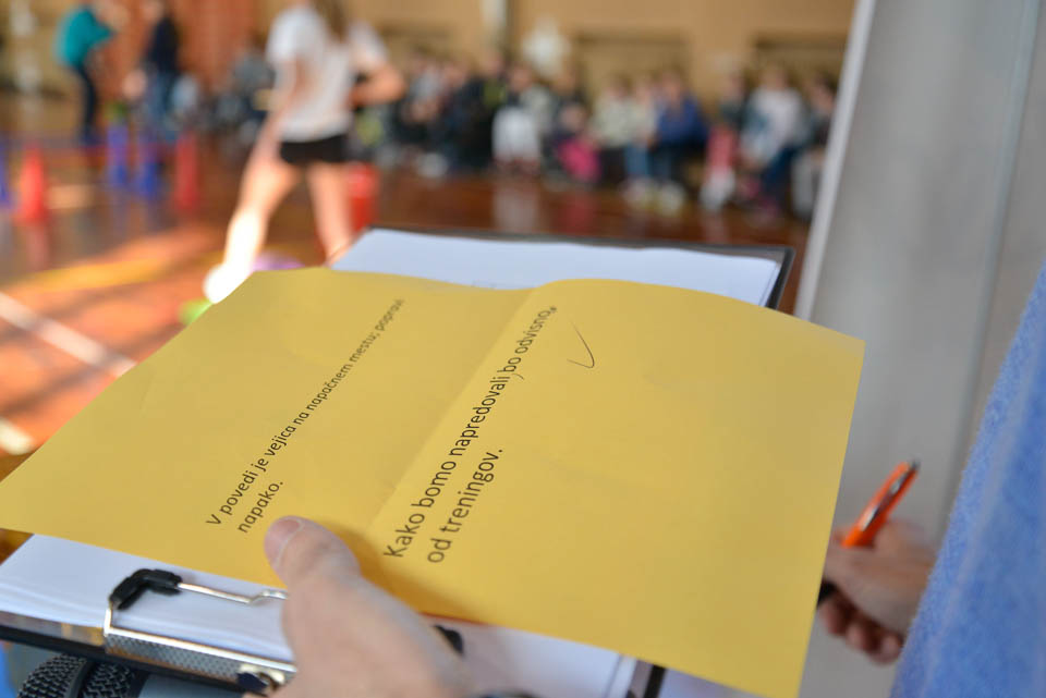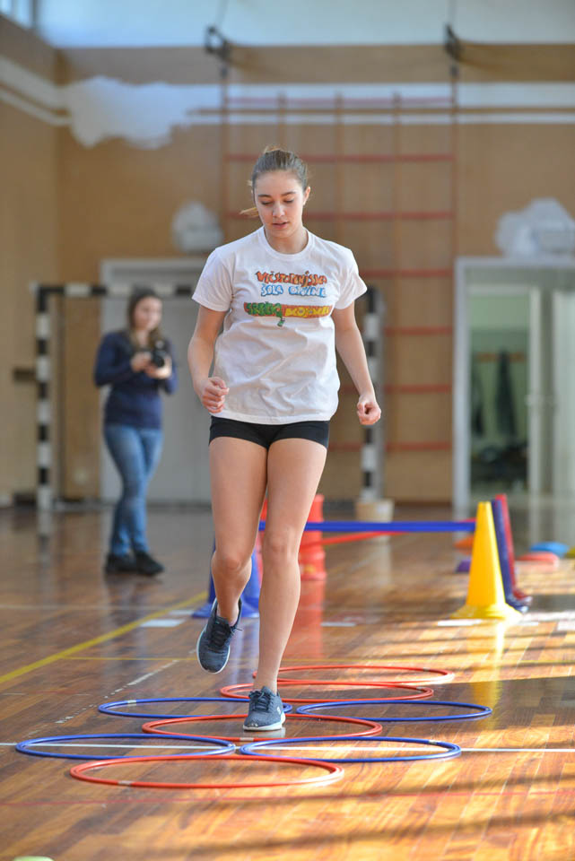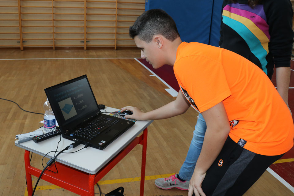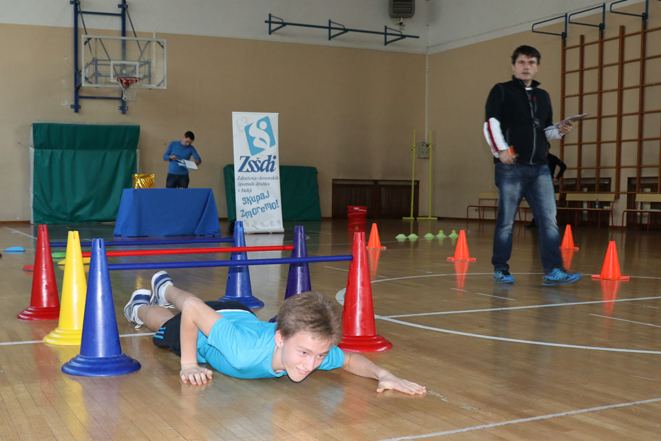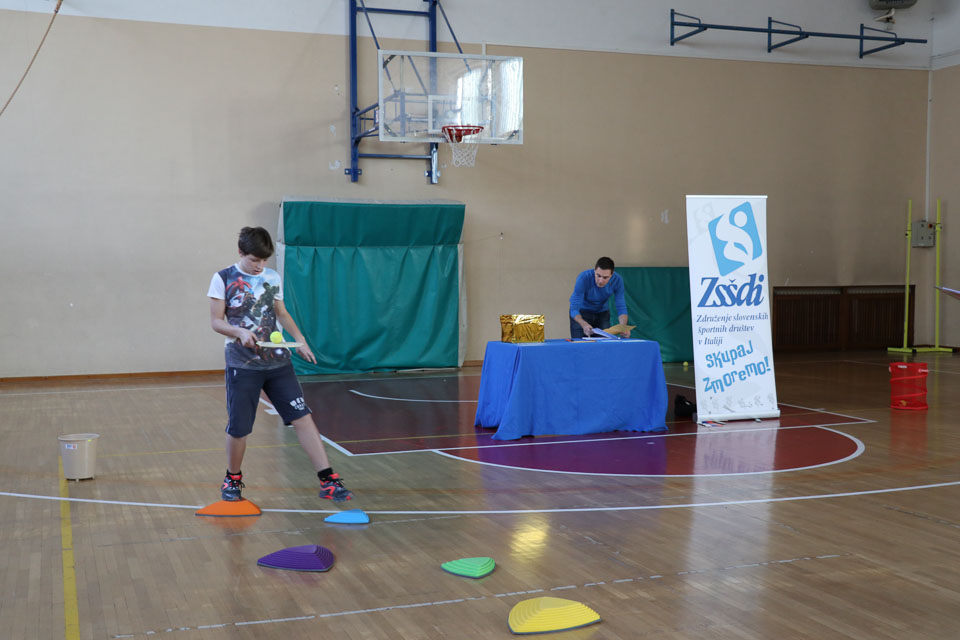 Drugi del tekmovanja je potekal v športni dvorani na Melari. Med učenci NSŠ Cirila in Metoda iz Katinare, ti so nastopili s tremi ekipami, je bila najboljša ekipa, ki so jo sestavljali Elia, Danjel, Nicolas, Elena in Martina (čas poligona 5.51.01; + 40 sekund dodatka zaradi penalizacij; – 125 sekund odbitka za pravilne odgovore na vprašanja).