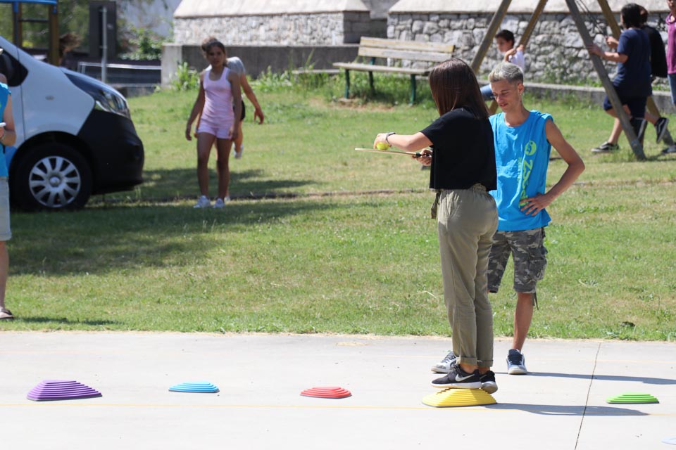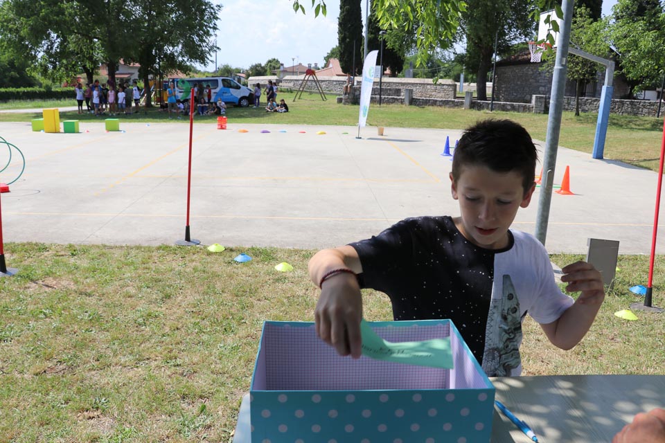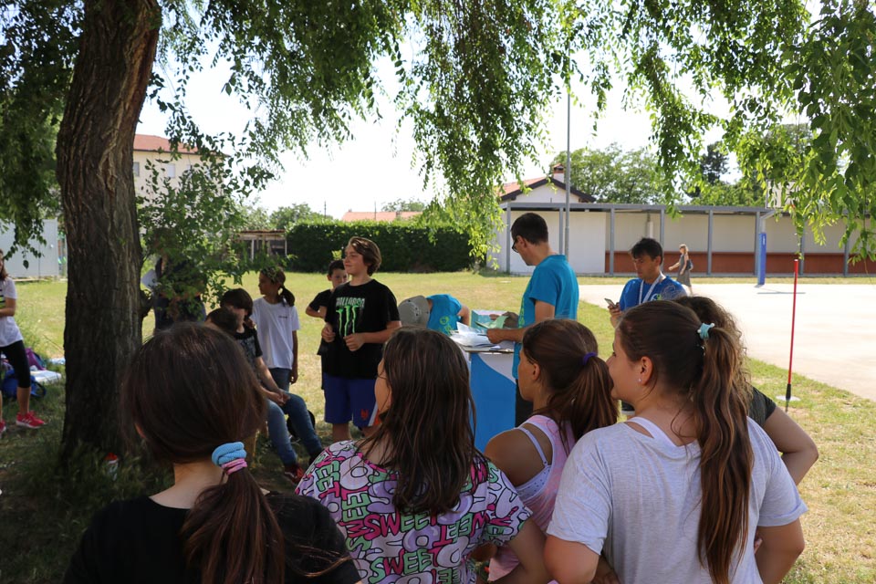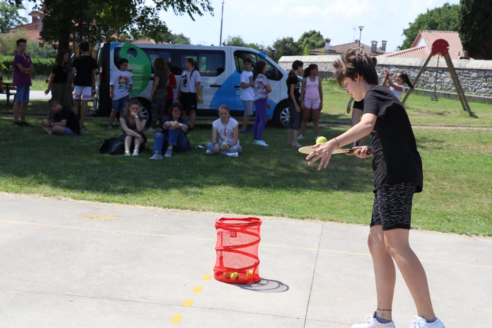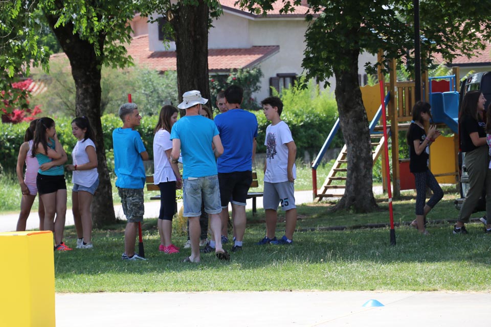 DOBERDOB – V sredo, 6. junija, je na zunanjem košarkarskem igrišču v Doberdobu potekala posedbna izvedba Šolskega jezikovnega poligona, ki ga ZSŠDI prireja v sodelovanju s Slovenskim raziskovalnim inštitutom. Tekmovanja, na katerem mladi pod 15. letom starosti utrjujejo svoje znanje slovenskega jezika preko igre in zabave, so se udeležili učenci popoldanskega pouka vseh razredov Nižje srednje šole Doberdob. Skupno jih je bilo 28. Najhitrejša je bila ekipa z imenom “Banane”, ki jo sestavljajo Samuel, Simone, Eleonora in Sofia. Zmagovalna četverka, je dosegla skupni čas 3.49.92.