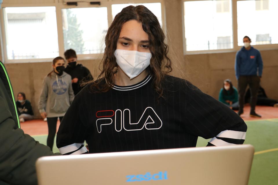 V ponedeljek, 14. februarja 2022, je ekipa ZSŠDI obiskala učenke in učence Dvojezične nižje srednje šole Pavel Petričič v Špetru. 3. A razred je nastopil s štirimi ekipami, med katerimi je na koncu slavila peterka, v kateri so tekmovali Delia Buzzinelli, Gaia Barbagallo, Linda Bergomas, Hanry Fior in Mihael Slipčevič. Zmagovalci so bili dokaj hitri in precizni ob izvajanju gibalnih vaj na poligonu in skoraj brezhibni ob odgovarjanju na vprašanja iz slovenske slovnice in besedišča, saj so si prislužili celih 80 sekund odbitka in tako osvojili vozovnico za deželni finale s časom 4.34.33.