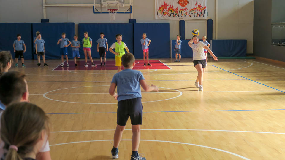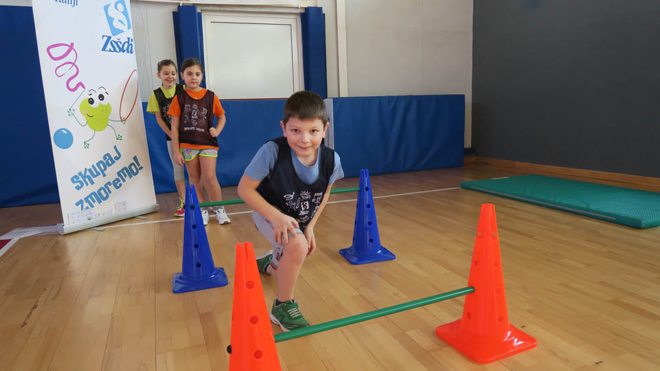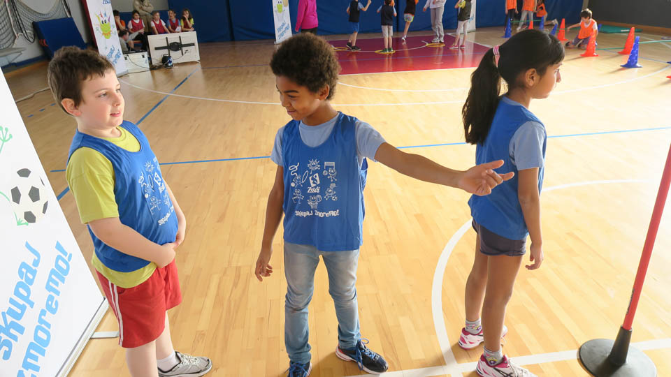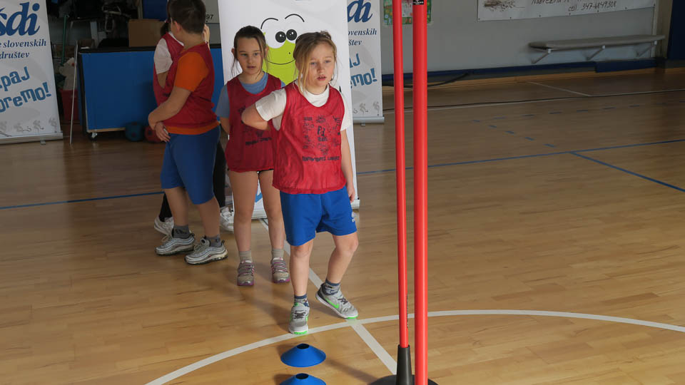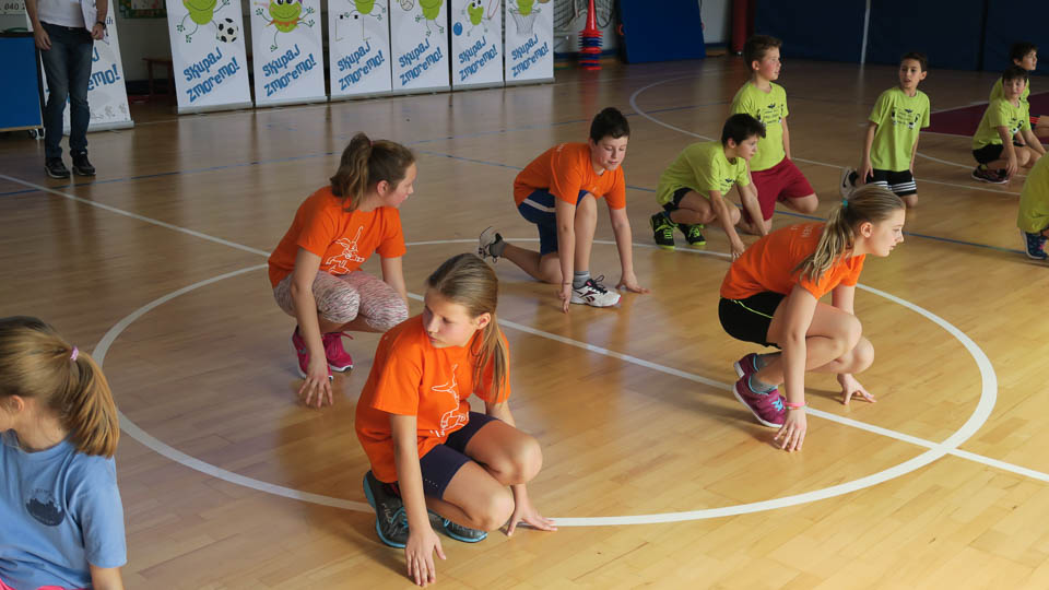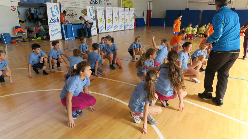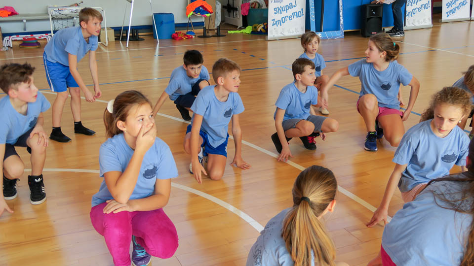 Najmlajši so se udeležili krožne vadbe Skokičinega vrtiljaka in se na šestih postojankah preizkusili v košarki, odbojki, nogometu, atletiki, gibalnem poligonu in v zabavni jezikovni igri.
