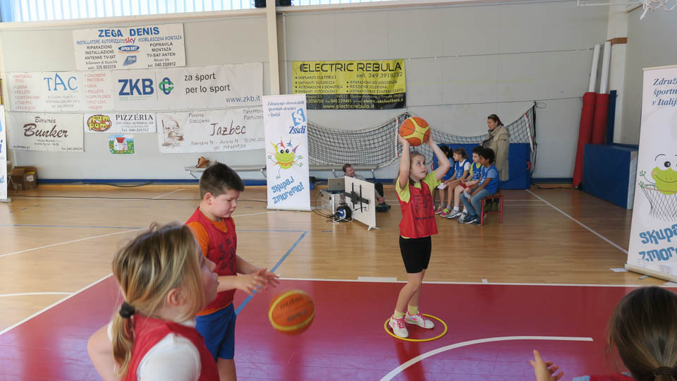 NABREŽINA – Nabrežina je bila v sredo, 15. februarja 2017, prizorišče nove pobude Združenja slovenskih športnih društev v Italiji, ki je po uspehu ponedeljkovega finalnega srečanja šolskega Jezikovnega poligona, ki je zaobjel vse nižje srednje šole s slovenskim učnim jezikom v Furlaniji julijski Krajini, že priredilo novo pobudo in usmerilo svojo pozornost v osnovnošolsko športno stvarnost.