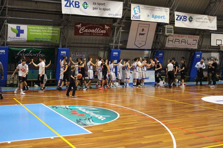 Košarka8. oktobra 201732Državna C-liga gold, 2. krog Riese Pio X (Treviso) The Team – Jadran Ispem 71:35 (14:15, 28:25, 46:33) JADRAN: M. Batich 4 (-, 2:4, 0:4), Zidarič 0 (-, 0:4, 0:4), De Petris 7 (1:4, 3:5, -), Daneu 4 (-, 2:4, 0:2), Ban 10 (4:4, 3:7, 0:2), Gregori 0 (-, 0:2, -), Ridolfi 3 (-, 0:3, 1:5), ...